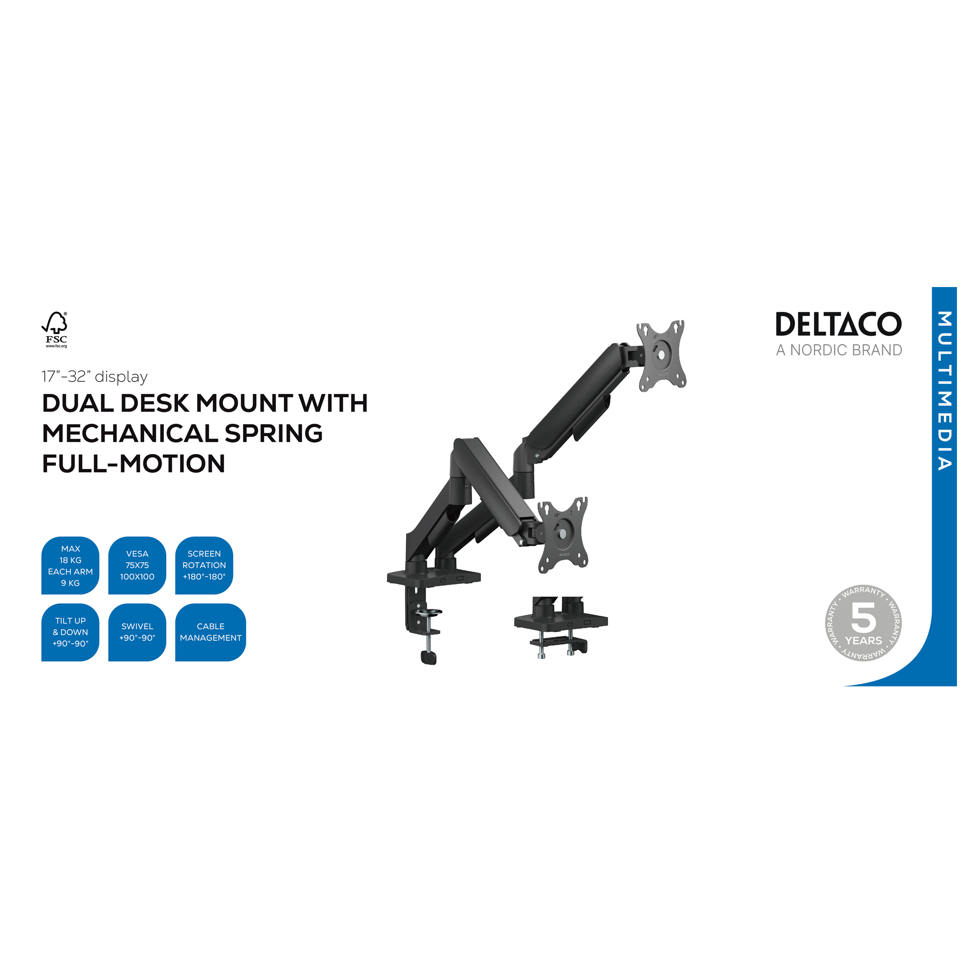 Monitor desk dual mount mechanical spring, 17-32" 9 kg, black