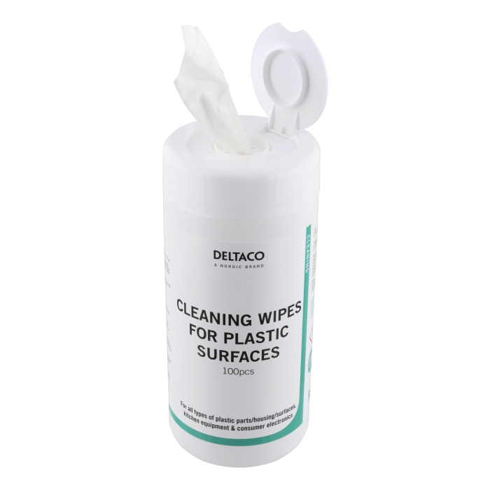 Puhdistusliina, joka soveltuu kaiken tyyppisille muovipinnoille. Pakkaus sisältää, jotka ovat biologisesti hajoavia. Nämä on suunniteltu erityisesti kulutuselektroniikalle ja keittiön pienkoneille.