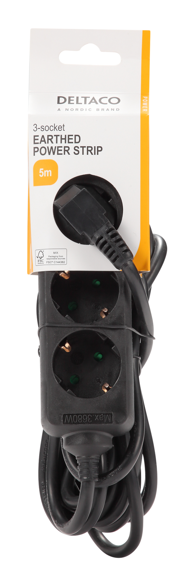 Earthed power strip, 3x CEE 7/3, 1x CEE 7/7, child protected, 5m, black