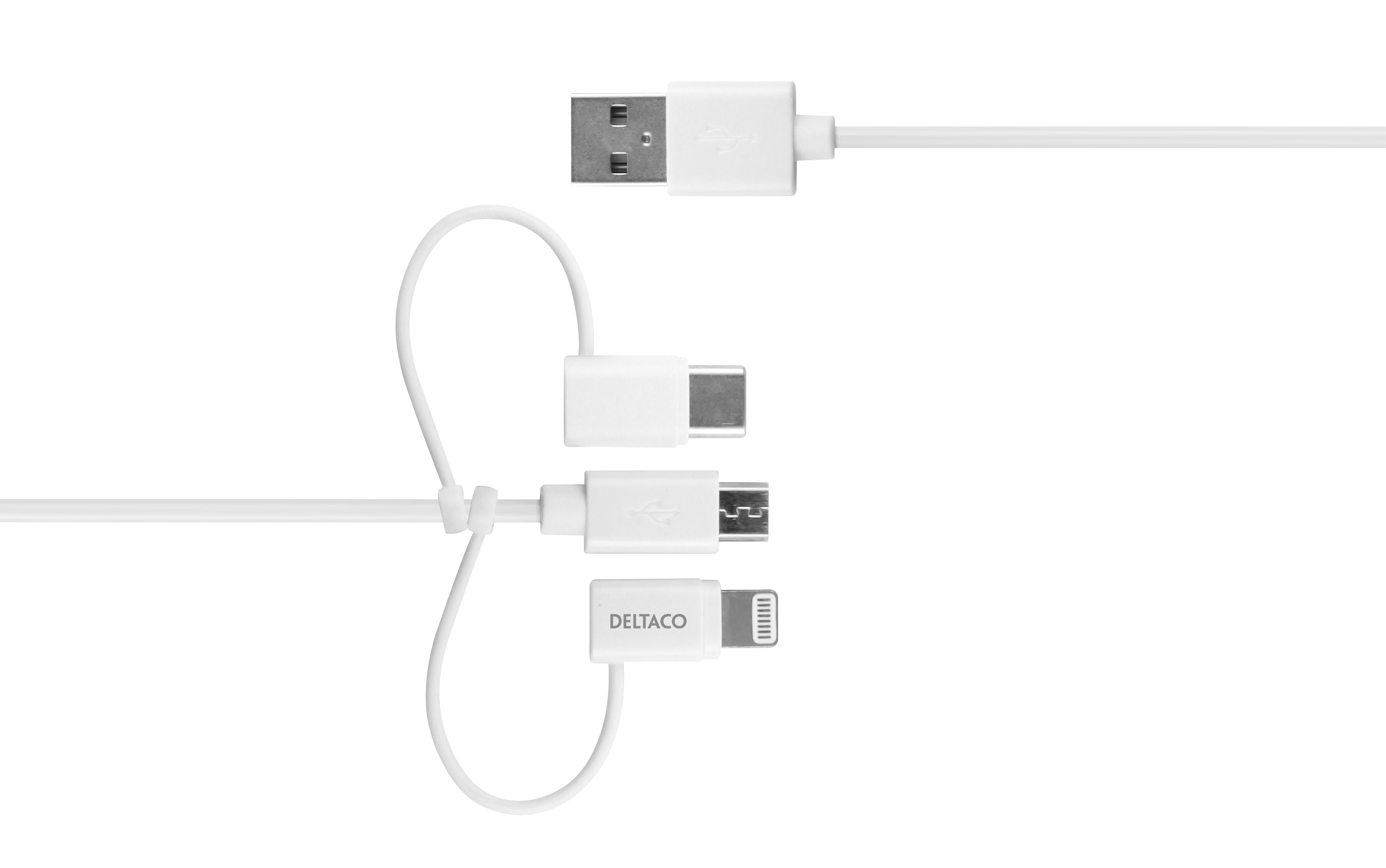USB-A - lightning cable, 3-in1, 1 m, white