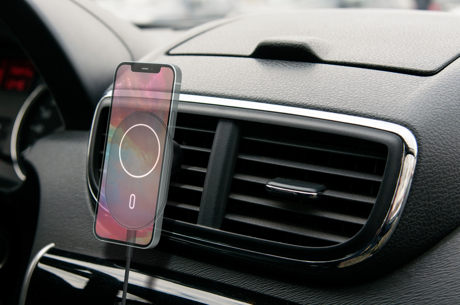 Langaton autolaturi, jossa on kiinteä magneetti. Tuote on näppärä ja tehokas tapa pitää iPhone 12, 13, 14, 15 tai 16 ladattuna liikkeellä ollessa. Tuote sisältää magneetin, joka pitää puhelimen lujasti paikallaan latauksen aikana. Lue lisää...