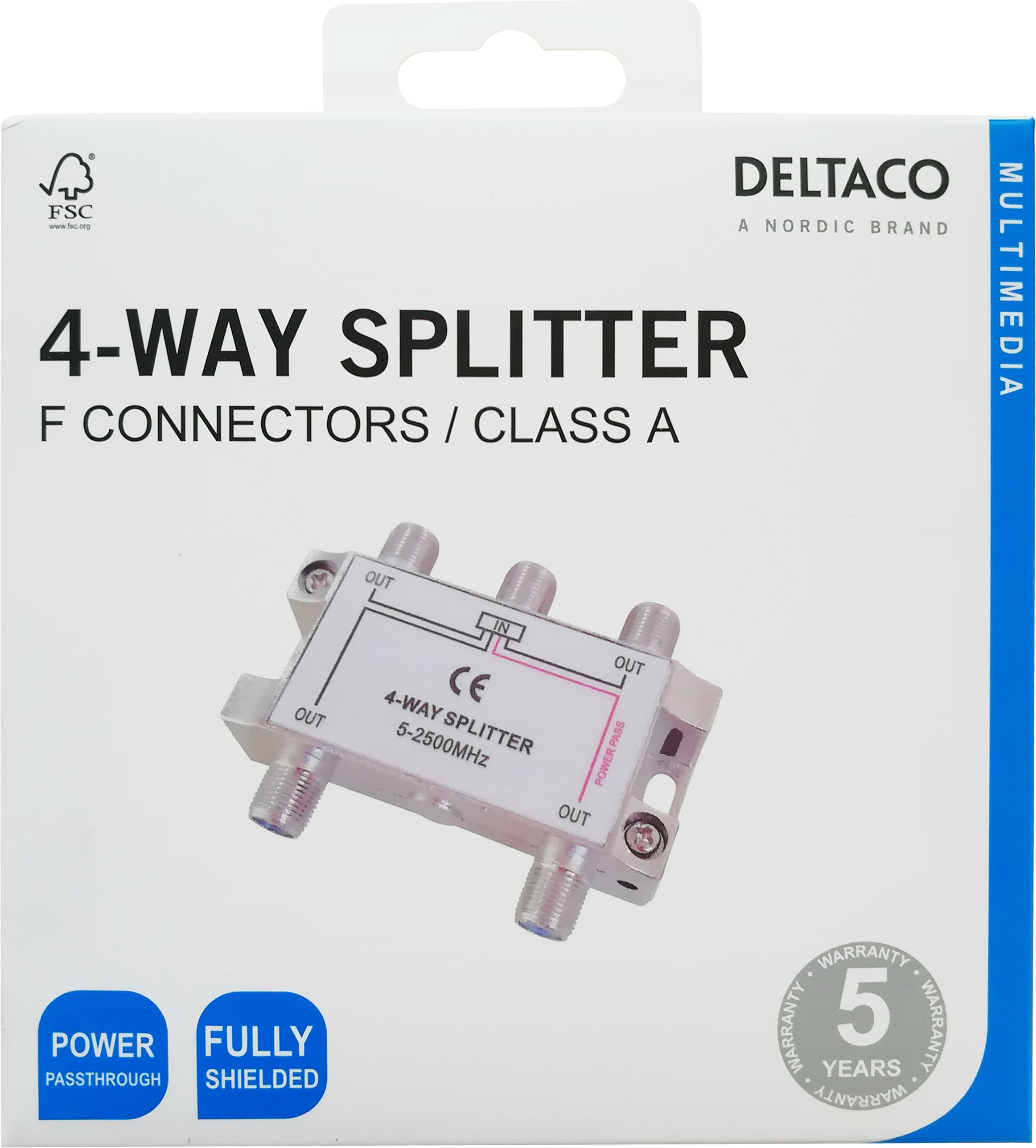 4-way splitter, F-connectors, 1 DC pass, ClassA