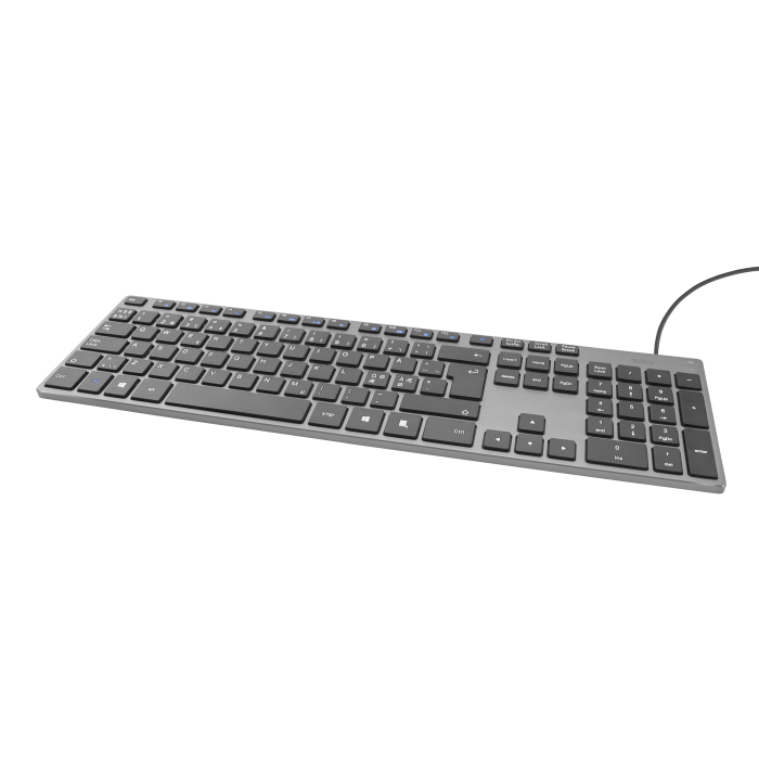 Langallinen näppäimistö, matala profiili, alumiinia, pohjoismainen asettelu, harmaa