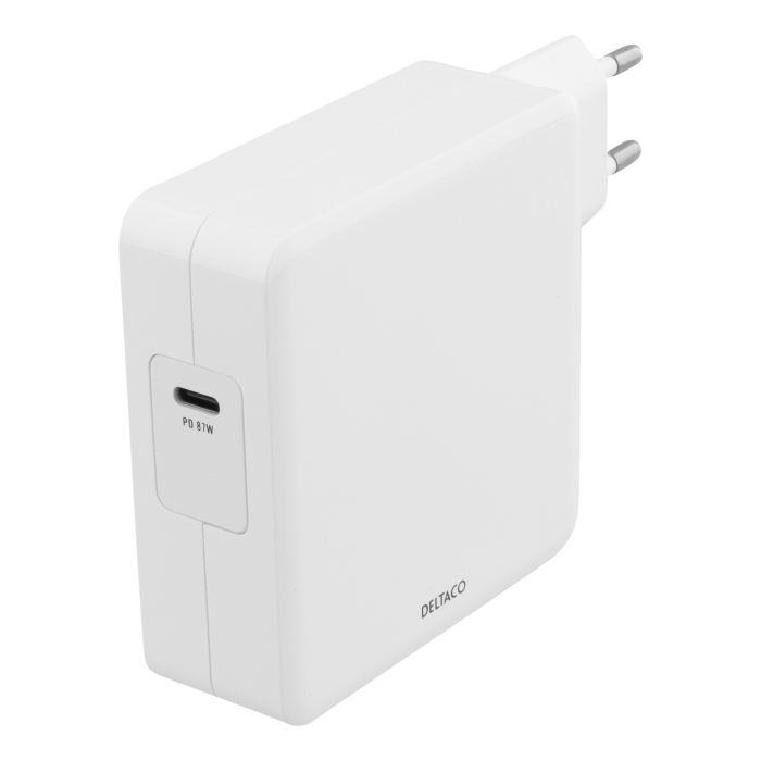 USB-C-virtasovitin, 87W, pikalataus, USB-C PD, valkoinen