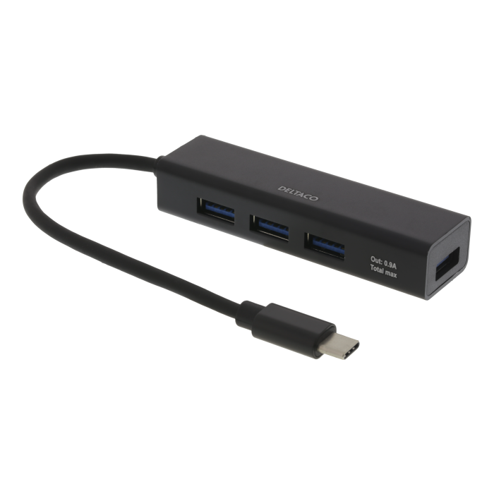 USB-C-pienoishubi, 4 USB-A-porttia, USB 3.1 Gen 1, musta