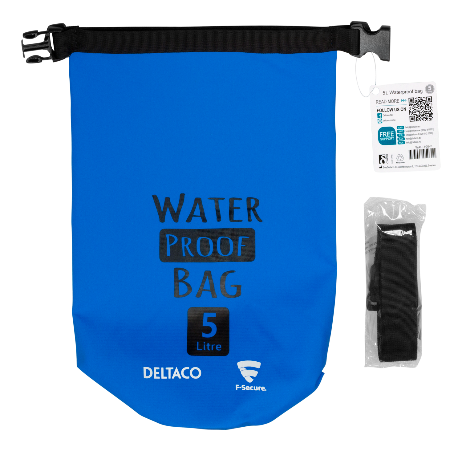 DELTACO universal bag, waterproof material, 5 L, IPX6, F-Secure, blue